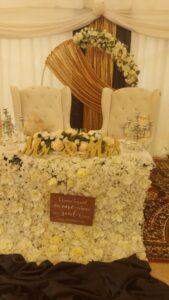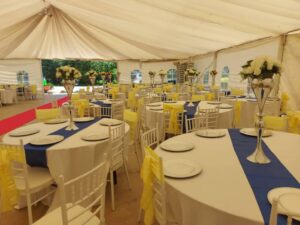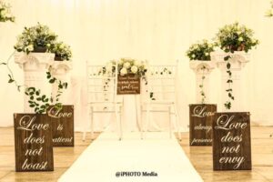 AllEvents GalleryRestaurant GalleryNursery GalleryCatering Gallery Wedding Décor Wedding Setup Wedding Table Setup Bride & Groom Seats White & Blue Décor Isle Setup